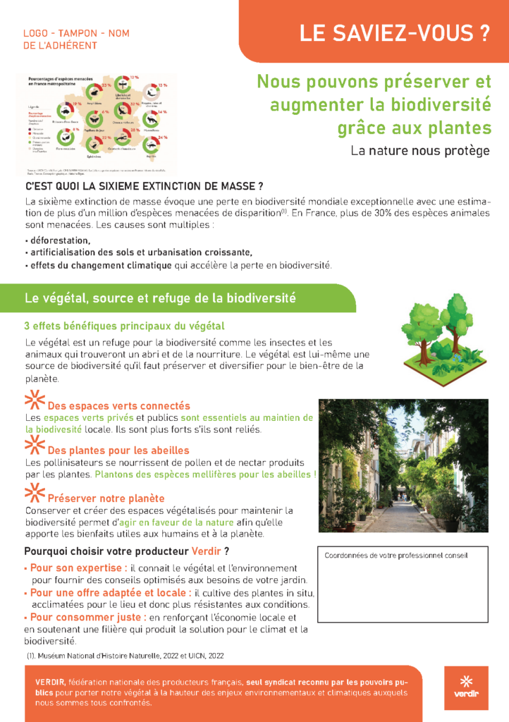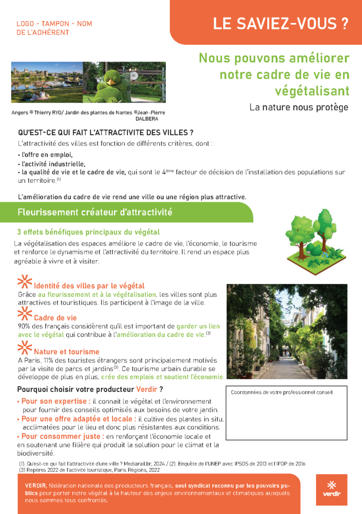 Le végétal est LA solution aux défis d’aujourd’hui et de demain. En valorisant le végétal, vous renforcez votre rôle d’expert et portez collectivement une réponse concrète aux enjeux sociétaux. Ensemble, cultivons l’avenir et faisons du végétal un atout essentiel pour un monde plus durable.